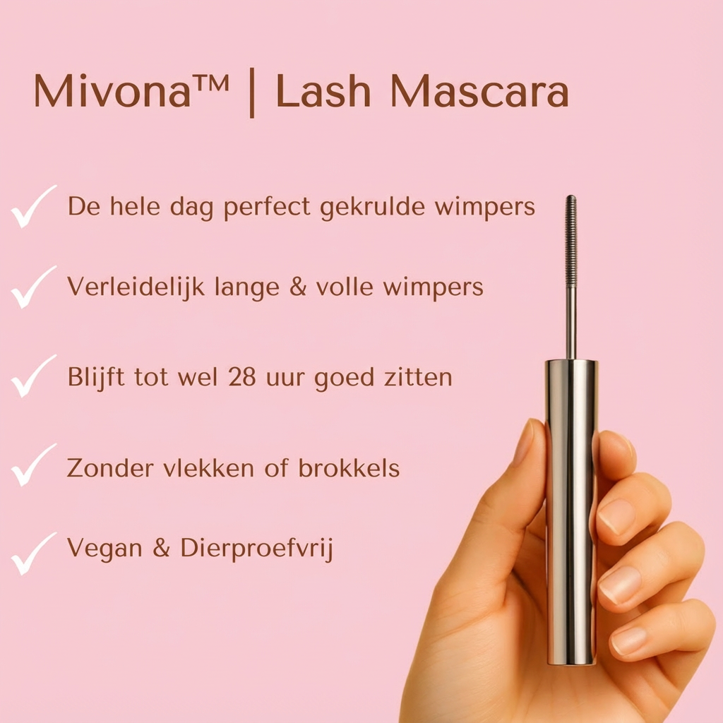 Mivona™ | Lash Mascara geeft je wimpers direct een vollere, langere en gelifte look — zonder klontjes of uitlopen. Dankzij het innovatieve borsteltje worden zelfs de fijnste wimpers perfect gescheiden en geaccentueerd, voor een open, gedefinieerde oogopslag die de hele dag blijft zitten. De formule is langdurig, comfortabel om te dragen en werkt ook bij gevoelige ogen.