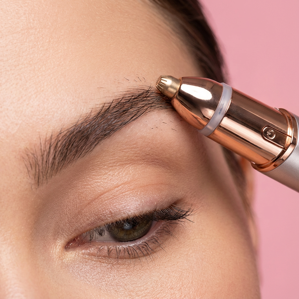 - Wenkbrauwen vormen — Gebruik voorzichtig het precisiekopje langs de rand van je wenkbrauw om overbodige haartjes te verwijderen.